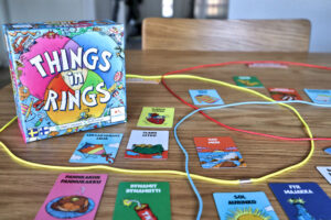 Things in Rings (2024) on partypeli jonka suomenkielinen painos on Lautapelit.fi:n käsialaa. Pelissä pelaajat (2-6) pyrkivät asettelemaan omat käsikorttinsa oikeisiin lokeroihin pelilaudalla sen tiedon pohjalta mitä pöydällä olevat kortit vinkkaavat. Tarkat säännöt korttien paikalle on ainoastaan yhden, tuomarina olevan, pelaajan tiedossa. Ohuen tiedon varassa hapuilua Pelin alkaessa pöydälle levitetään yhdestä kolmeen kategoriarinkulaa. Mitä useampi rinkula […]
