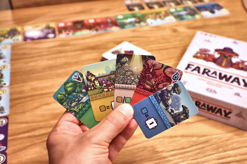 Faraway (2023) sai julkistuksensa jälkeen paljon positiivista pöhinää ja lukuisia pelialan palkintoehdokkuuksiakin – joista myös muutaman voitonkin. Tämä on sikäli kiinnostavaa, että peli on kuitenkin varsin suorasukainen ja simppeli korttipeli. Hienoa onkin, että Asmodee Nordicsin käsissä Faraway saatiin nyt myös suomeksi joten on hyvä hetki tarkastella peliä tarkemmin.