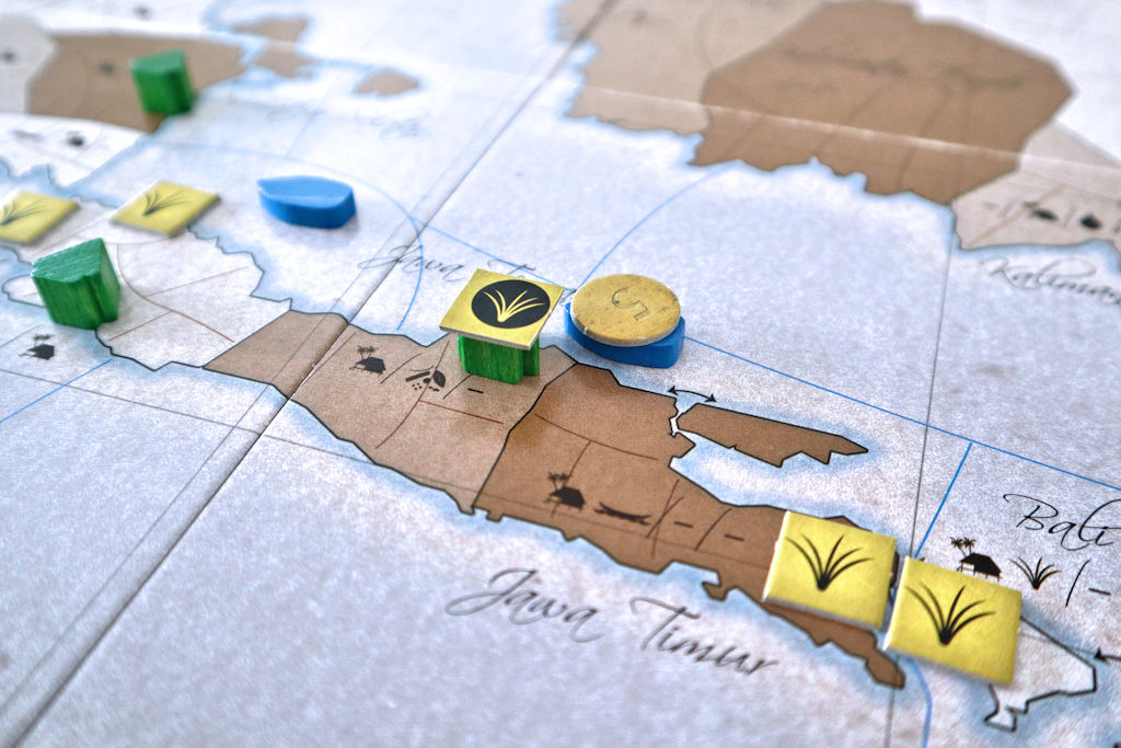 Ja sama rajoitus voi tulla vastaan kohdekaupungissakin: pelin alkaessa kaikki kaupungit ottavat ainoastaan yhden kutakin tuotetyyppiä vastaan koko operointivaiheen aikana joten vain nopein riisifirmaa ehtii kääräistä voitot ja muut joutuvat suuntaamaan katseensa muihin kaupunkeihin. Riisistä irtoaa 20 taalaa, mausteesta 25 taalaa ja vaikkapa öljystä 40. Laivayhtiöiden omistajat vetävät kuitenkin välistä oman siivunsa mikä on viisi taalaa per käytetty ruumatila. Pahimmillaan voi käydä niinkin, että valtaosa tuloista rapsahtaakin ihan eri pelaajan tilille kuin itse tuottajalle. Ei ole tuottajan elämä välttämättä helppoa Indonesiassakaan.