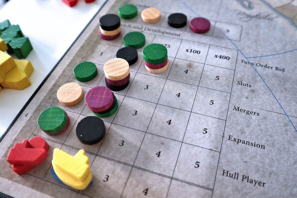 Vuorojärjestystä seuraa mahdolliset yritysfuusiot joihin pelin alkaessa kenelläkään ei ole vielä tarvittavaa taitota. Siispä jätämme sen tuonnemmaksi ja hyppäämme firmojen perustamiseen.