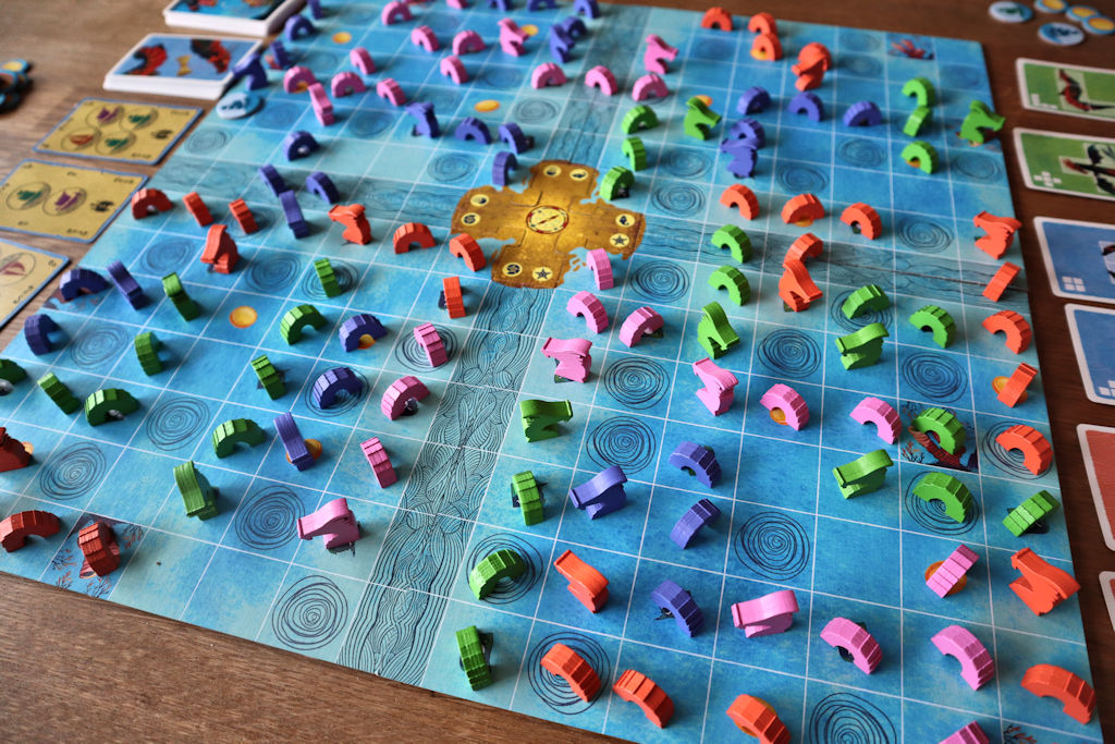 Omat merihirviöt eivät saa olla koskaan kosketuksissa toisiinsa, mutta kaverin viekkuun on pakko mennä edes ruudun verran, mutta jokainen kylkiosuma antaa näille rahaa. Peli loppuu, kun merihirviöt on kaikki laudalla (eli pelataan kiinteä määrä kierroksia), jolloin laudan neljänneksistä jaetaan vielä enemmistöpisteytyksellä bonuksia. Nämä enemmistöbonukset vaihtelevat sen mukaan, miten pelin aikana on mahdollisesti peitelty pyörteitä joten heikommin edustetuissa laudanosissa pyörteiden peittely – vaikka siitä pieniä miinuksia ropiseekin – voi olla toisinaan kannattaa loppupisteytys silmällä pitäen. Sea Dragons vaikuttaa sääntöjensä perusteelta hyvinkin pätevältä abstraktilta, vaikka ulkoasu vilunväristyksiä aiheuttaakin. No, ehkä se ei luonnossa näytä niin karmealta?