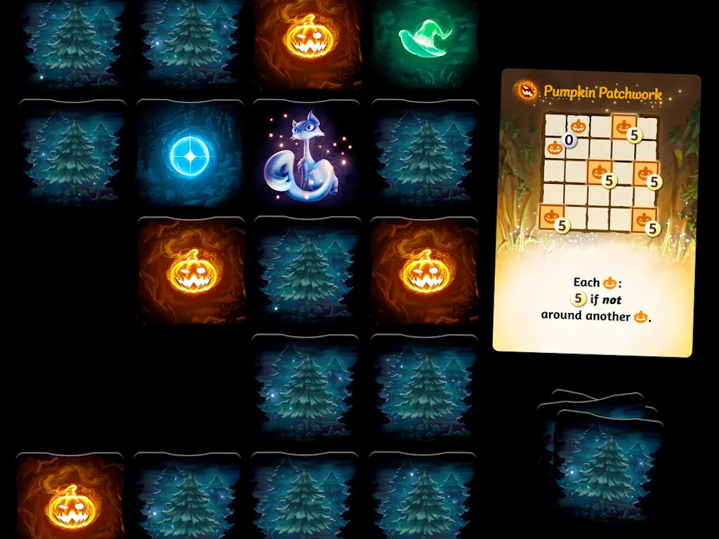 Öisen metsän hilpeät valoilmiöt on tämän laatanasettelun innoittajana, kun pelaajat vuorotellen poimivat tarjolle olevasta – ympyrän muotoon – asetellusta laattavalikoimasta yhden itselleen ja pelaavat sen laatastonsa jatkeeksi. Wispwoodin koukku vain on se, että poimiessaan mieleisensä laatan tulee samalla lukinneeksi kaksi vaihtoehtoa millaiseen polyominomuotoon juuri poimittu laatta kera geneeristen puulaattojen tulee asettaa – ja kaikki tämä pitää mahtua tiettyyn maksimiruudukkokokoon.